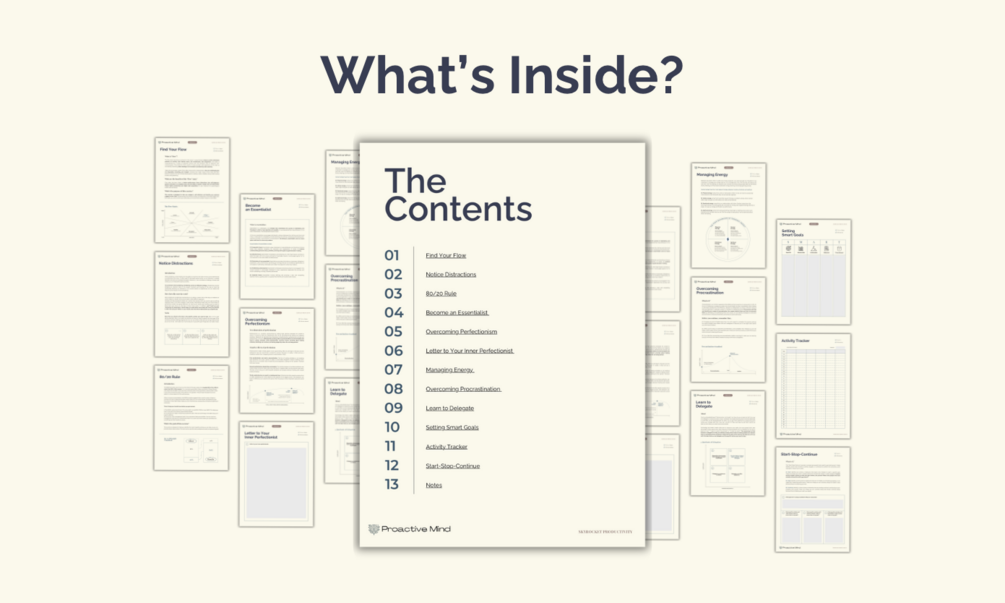 You’ll receive a comprehensive digital guide with interactive worksheets, exercises, and tools like the 80/20 rule, goal-setting frameworks, and time management techniques. Everything is designed to help you structure your day and build productive habits.